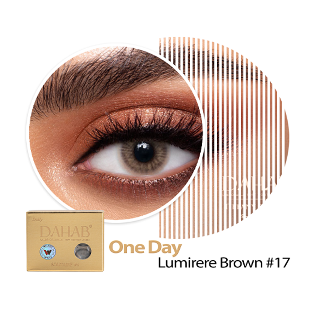 عدسات ذهب اليومية اللون LUMIRERE BROWN #17 : اختاري عدسات ذهب لومير براون لعيون أجمل في جميع مناسباتك،إنها مصممة لتمنح عينيك مظهرا جذابًا ونظرة طبيعية وصحية مثالية لأي مناسبة.كما أنها مريحة للغاية للارتداء طوال اليوم دون أي تهيج وعدم الراحة بفضل خاصيتها التي تسمح بمرور الأكسجين إلى العين، كما أنها مناسبة مع الإطلالات المسائية مع المكياج . مميزات ومواصفات عدسات ذهب اليومية اللون LUMIRERE BROWN #17 : عدسات بألوان ساحرة مصممة خصيصا لجمال عينيك مع الحماية الكاملة من الأشعة فوق البنفسجية. مجموعة خلاقة من الألوان تعطيك نظرة فريدة وجذابة يمكن استخدمها لمره واحده فقط . عدسات مصنوعة من أفضل الخامات الكورية. خلاقة من الألوان تعطيك نظرة فريدة وجذابة يمكن استخدمها لمره واحده فقط . عدسات مصنوعة من أفضل الخامات الكورية. أحدث العدسات اللاصقة التجميلة. تناسب جميع الأذواق. مناسبة للارتداء أثناء النهار وفي المساء. توفر اطلالات بسيطة وجريئة. تمنع جفاف العين. تفاصيل المنتج: قطر العدسة : 14.2 منحنى قاعدة: 8.6 محتويات العبوة : 2 عدسة بلد الصنع : كوريا الجنوبية العلامة التجارية: ذهب طريقة استخدام عدسات ذهب شهرية لومير براون