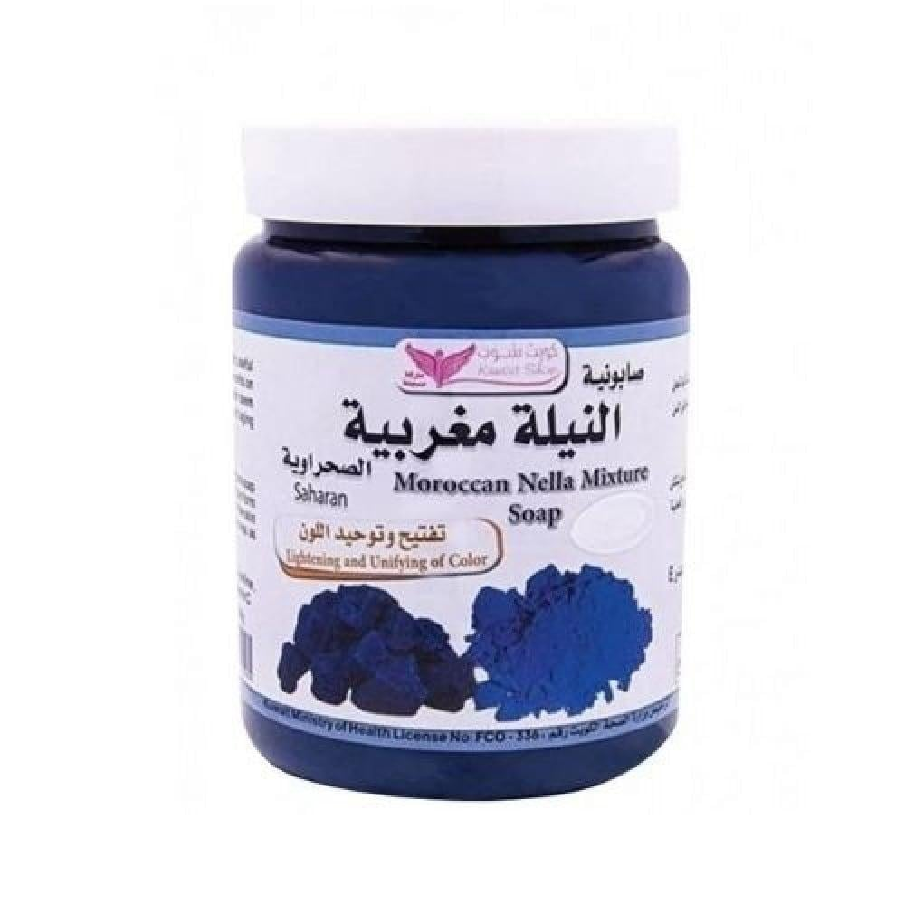 صابونية النيلة المغربية - 500 مل هي منتج مثالي للعناية بالبشرة، مستوحى من التقاليد المغربية العريقة، ويستخدم في تنظيف البشرة بفعالية مع تحسين مظهرها وترطيبها.وصف المنتج:الحجم: 500 ملالنوع: صابونيةاللون: أزرق طبيعي مشتق من نبات النيلةالاستعمال: مناسب للجسم والوجه.المكونات الرئيسية:نبات النيلة: يساعد في تفتيح البشرة وتقليل التصبغات والبقع الداكنة.زيوت طبيعية: ترطب البشرة بعمق وتتركها ناعمة ومتألقة.مستخلصات عشبية: تضفي على المنتج فوائد مهدئة ومنعمة للبشرة.الفوائد:تنظيف عميق مع الحفاظ على ترطيب البشرة.تفتيح البشرة وتوحيد لونها.يساعد في إزالة خلايا الجلد الميتة.يعطي البشرة إشراقة صحية ولمعانًا طبيعيًا.مناسب لجميع أنواع البشرة، بما في ذلك البشرة الحساسة.طريقة الاستخدام:خذ كمية مناسبة من الصابونية وضعها على بشرتك المبللة.افرك بلطف بحركات دائرية لعمل رغوة.اتركها لبضع دقائق (2-5 دقائق للحصول على مميز النتائج).اشطف بالماء الدافئ وجفف البشرة بلطف.ملاحظات:يُفضل استخدامها من 2-3 مرات أسبوعيًا للحصول على مميز النتائج.يُحفظ المنتج في مكان جاف وبارد بعيدًا عن أشعة الشمس